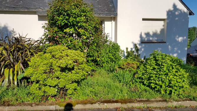 Le client possède un petit jardin de 70 m² situé dans un lotissement à Sarzeau. La pelouse n’avait pas été entretenue depuis plusieurs semaines, et les massifs autour de la terrasse commençaient à perdre en propreté visuelle. Le client souhaitait une remise au propre rapide avant l’arrivée de la famille pour le week-end.